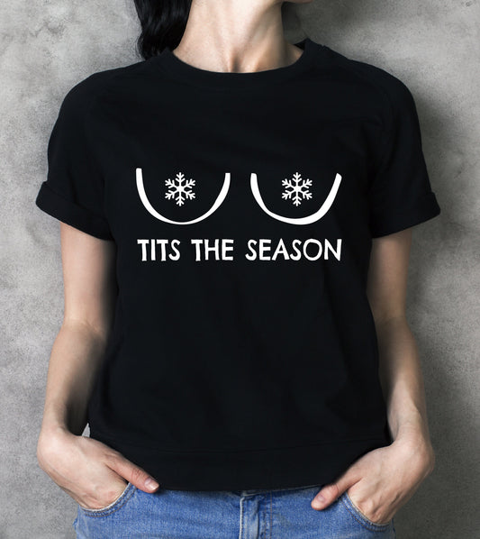 Tits The Season B T-Shirt | Rude Funny Christmas Tshirt | Cartoon Boobs Tee