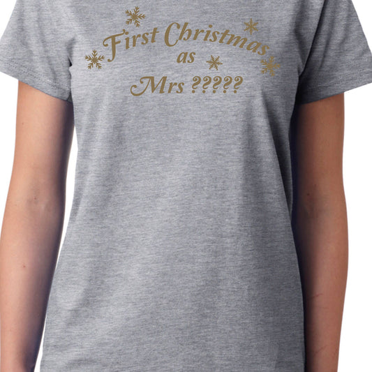 First Christmas as Mrs (Any Name) Personalised T-shirt, Funny Gift