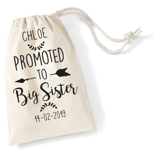 Personalised Promoted to Big Sister Cotton Gift Bag, Drawstring WM115