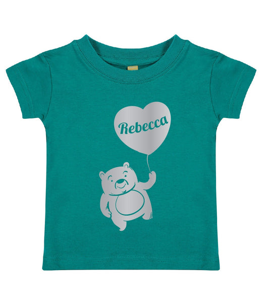 Personalised Silver Print Teddy Bear with Balloon Kids T-Shirt | Personalised Kids Tshirt with Any Name | Heart T-shirt