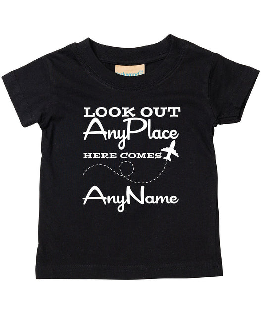 Personalised Babies/Toddlers/Kids Holiday T-Shirt | Look Out (Any Place) Here Comes (Any Name) | Child's Name Vacation Tee