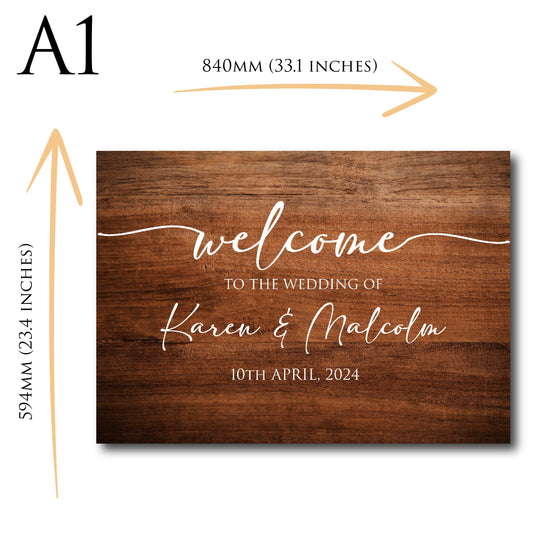 Personalised Wood Effect Wedding Welcome Sign TLPCW007 Physical or Digital, A1 or A2 Welcome Board for Wedding, Welcome Poster for Wedding,