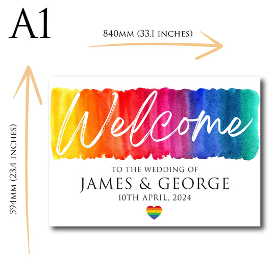 Personalised Wedding Welcome Sign Rainbow TLPCW010 Physical or Digital, A1 or A2 Landscape Welcome Board Same Sex Wedding Gift