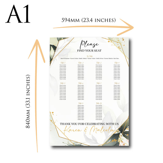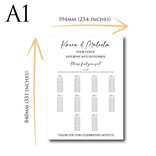 Personalised Wedding Seating Plan Board | Table Plan Welcome Sign SP002 Physical or Digital, A1 or A2 Portrait Welcome Board for Wedding