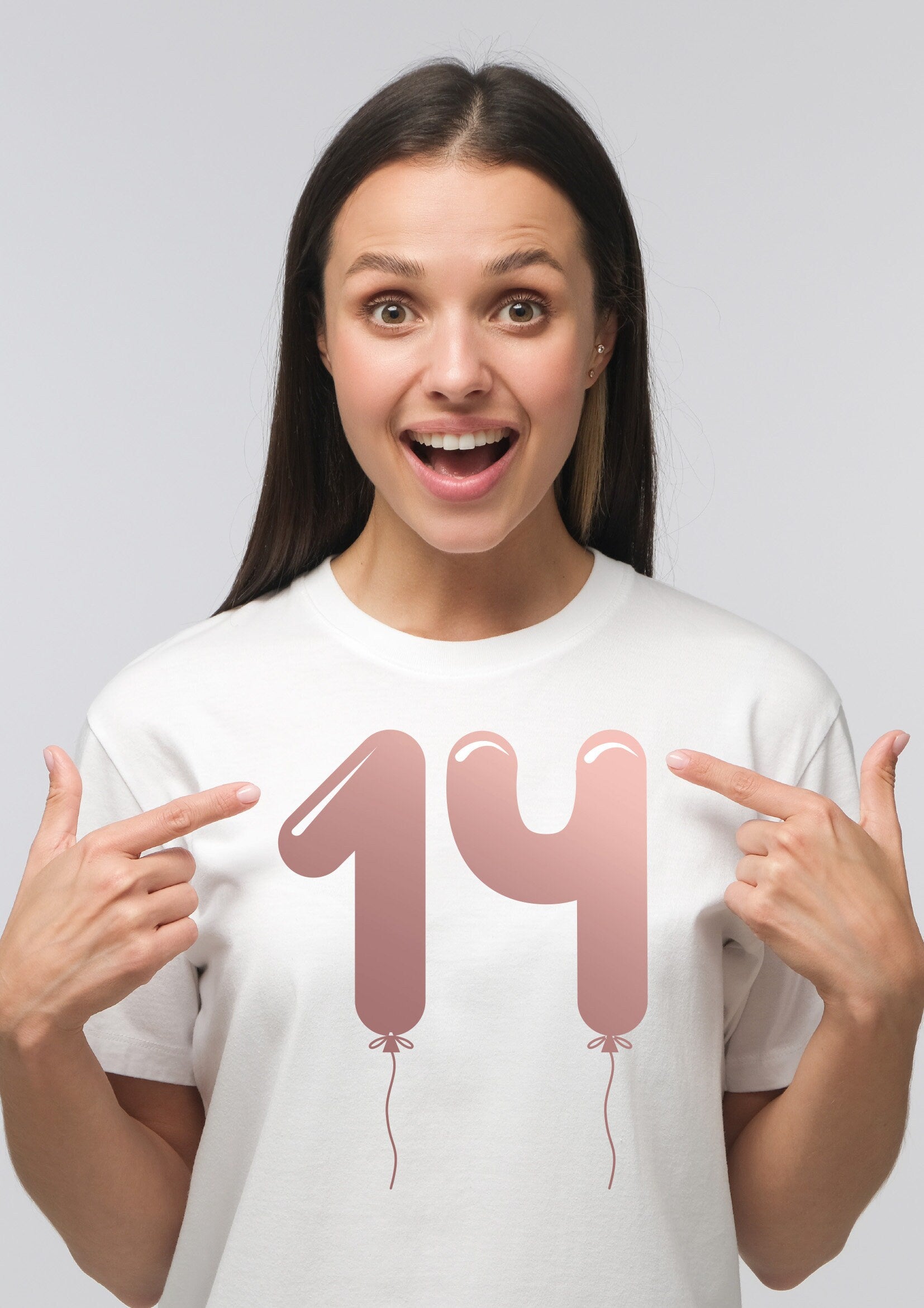 14th Birthday Rose Gold Balloons T-Shirt - 14th Birthday Tee | Celebration