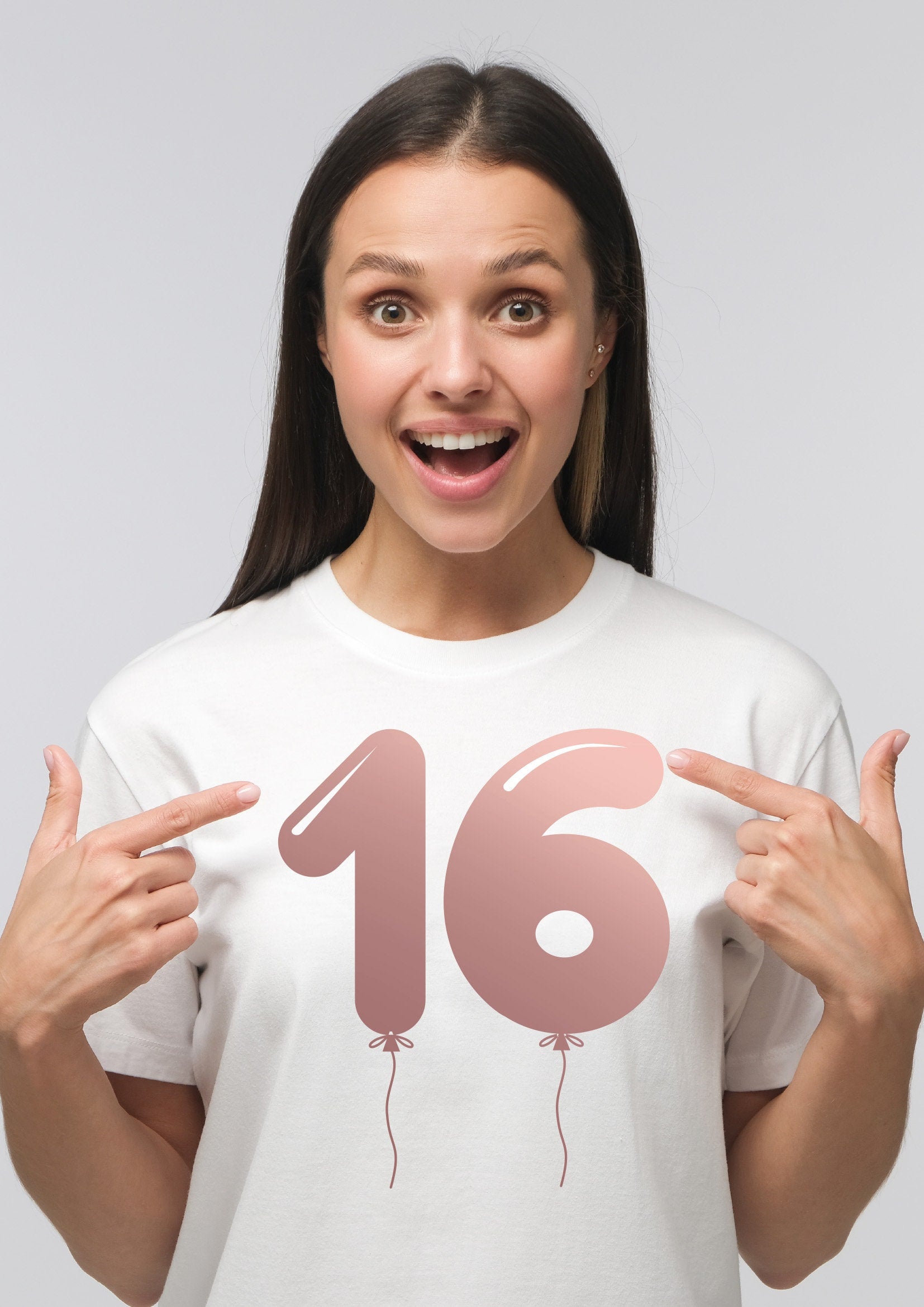 16th Birthday Rose Gold Balloons T-Shirt - 16th Birthday Tee | Celebration