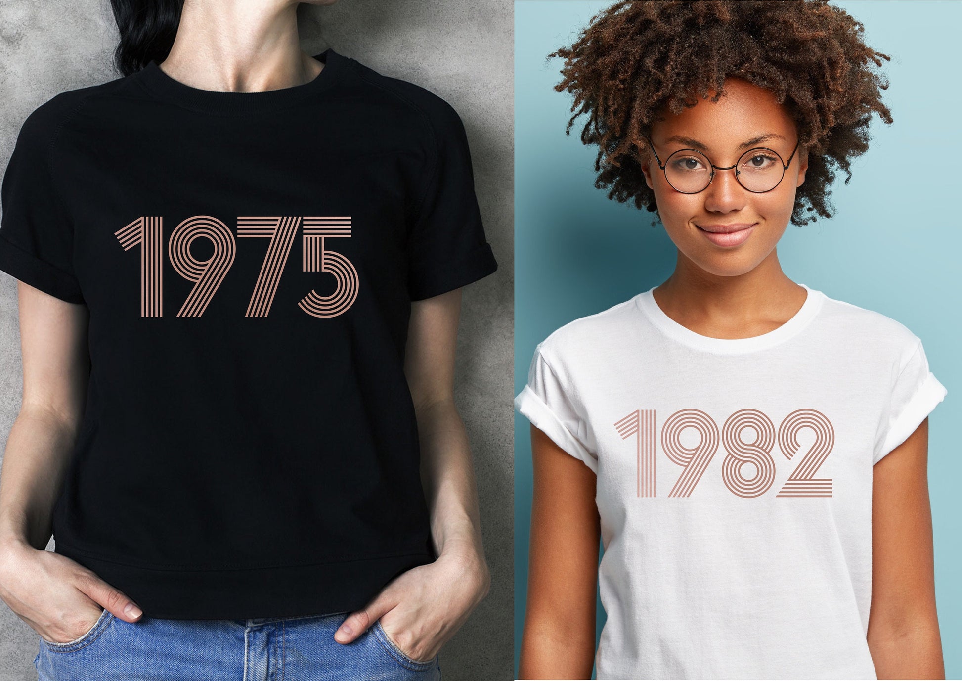 Disco Style Year of Birth T-Shirt | Personalised Rose Gold Slogan Tee | Cool Logo Tshirt | Choose the year
