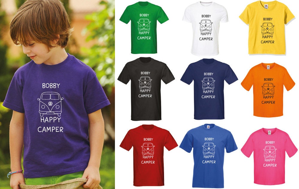 Kids Personalised Happy Camper T-Shirt - Any Name Children's Birthday