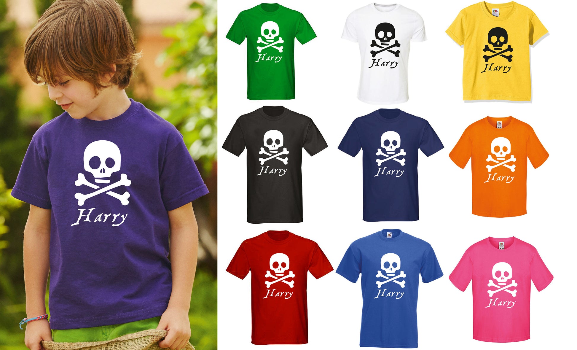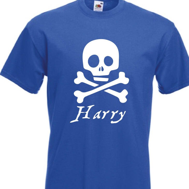 Kids Personalised Pirate T-Shirt - Any Name Children's Birthday Christmas Pirates