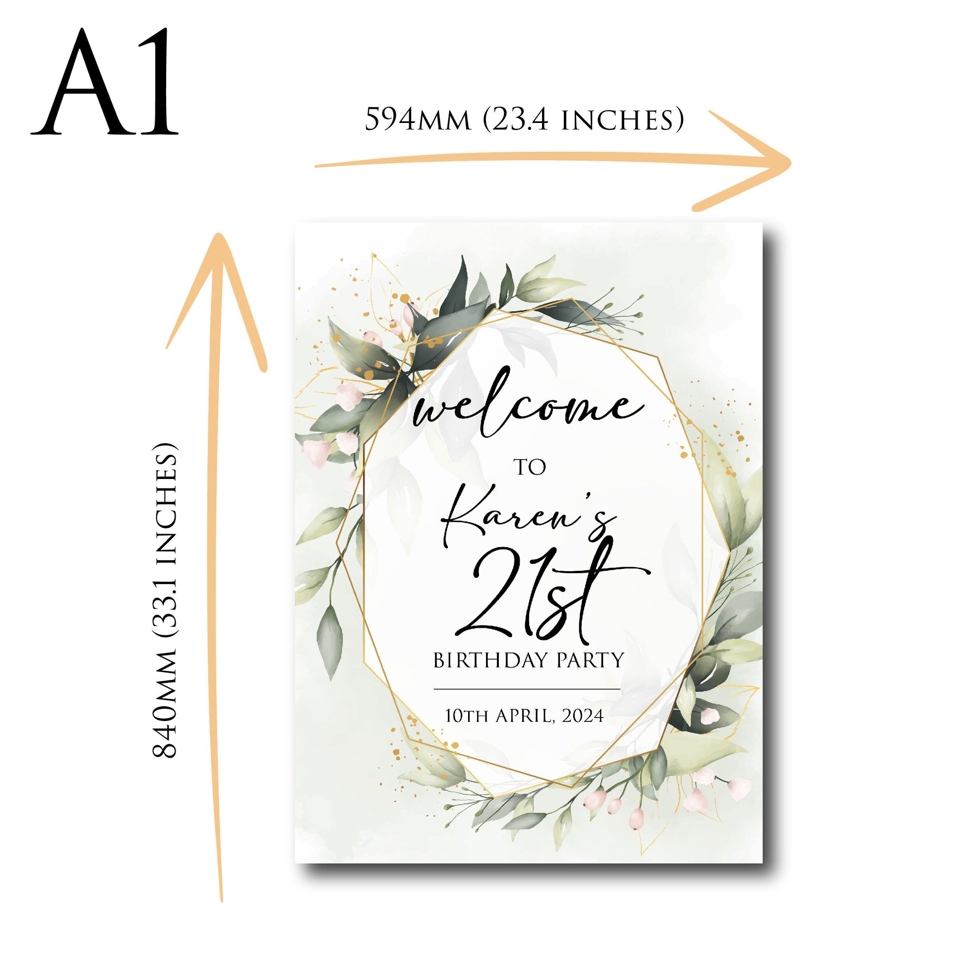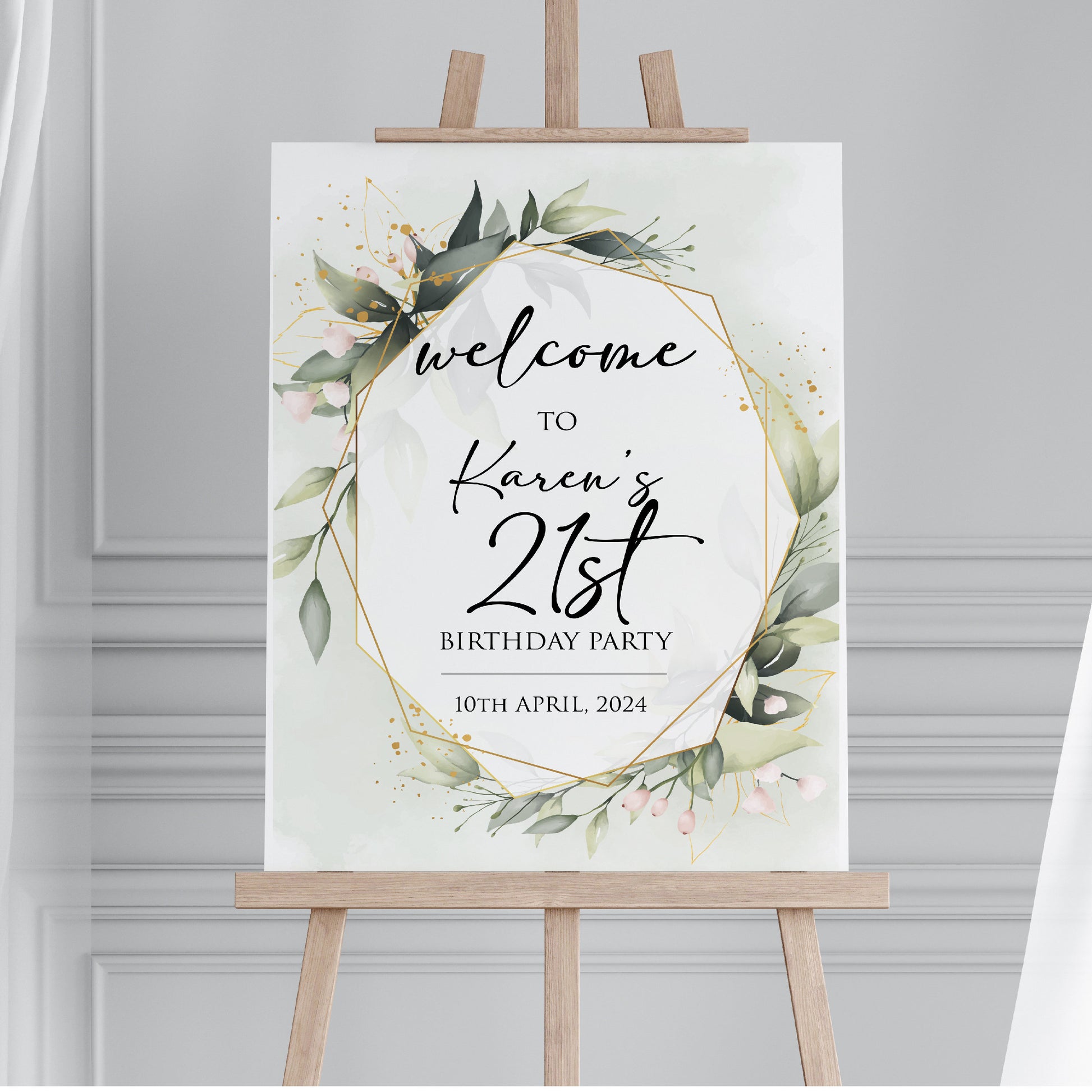Personalised 21st Birthday Party Welcome Sign TLPC21001 Physical or Digital, A1 or A2 Portrait Welcome Board for Birthday Easel