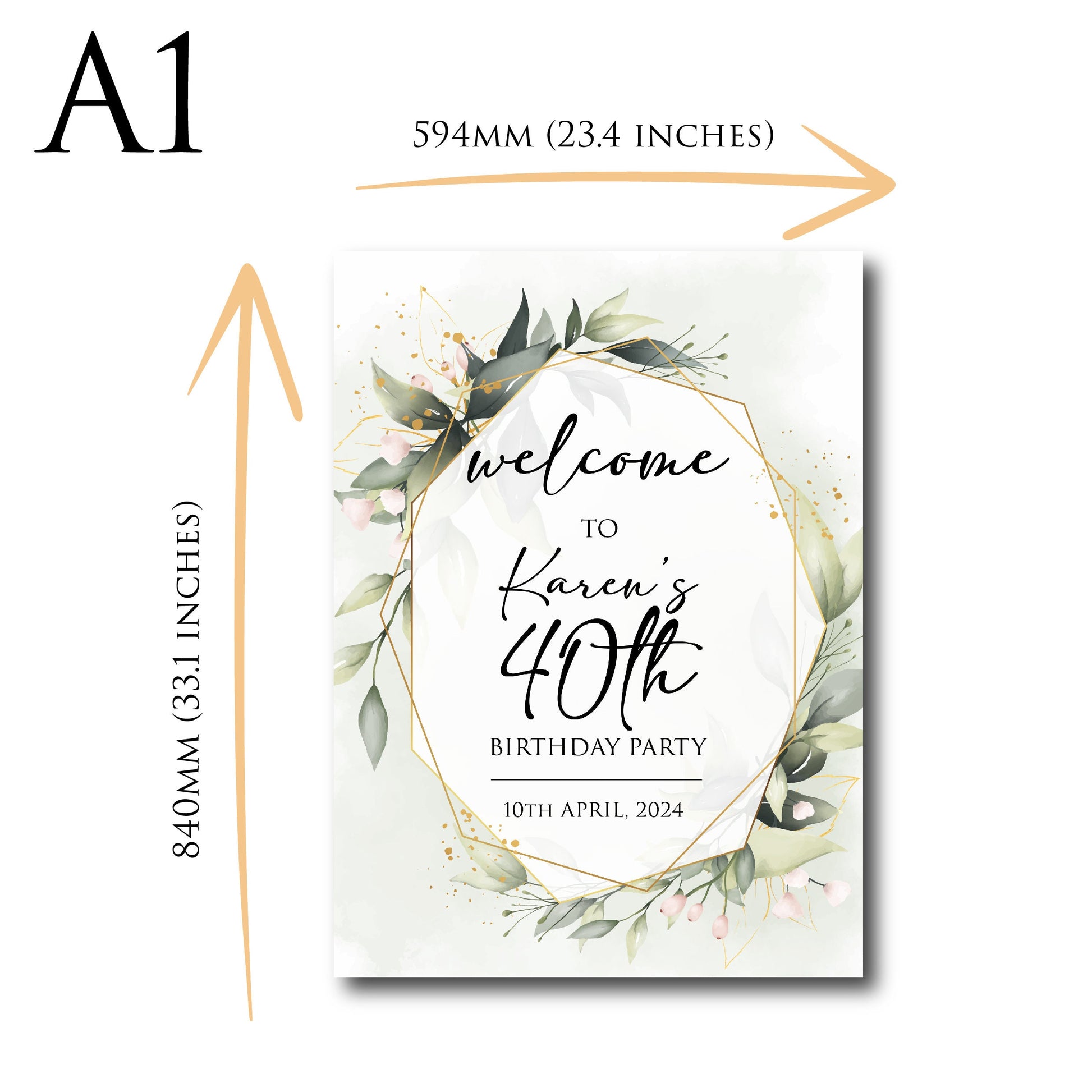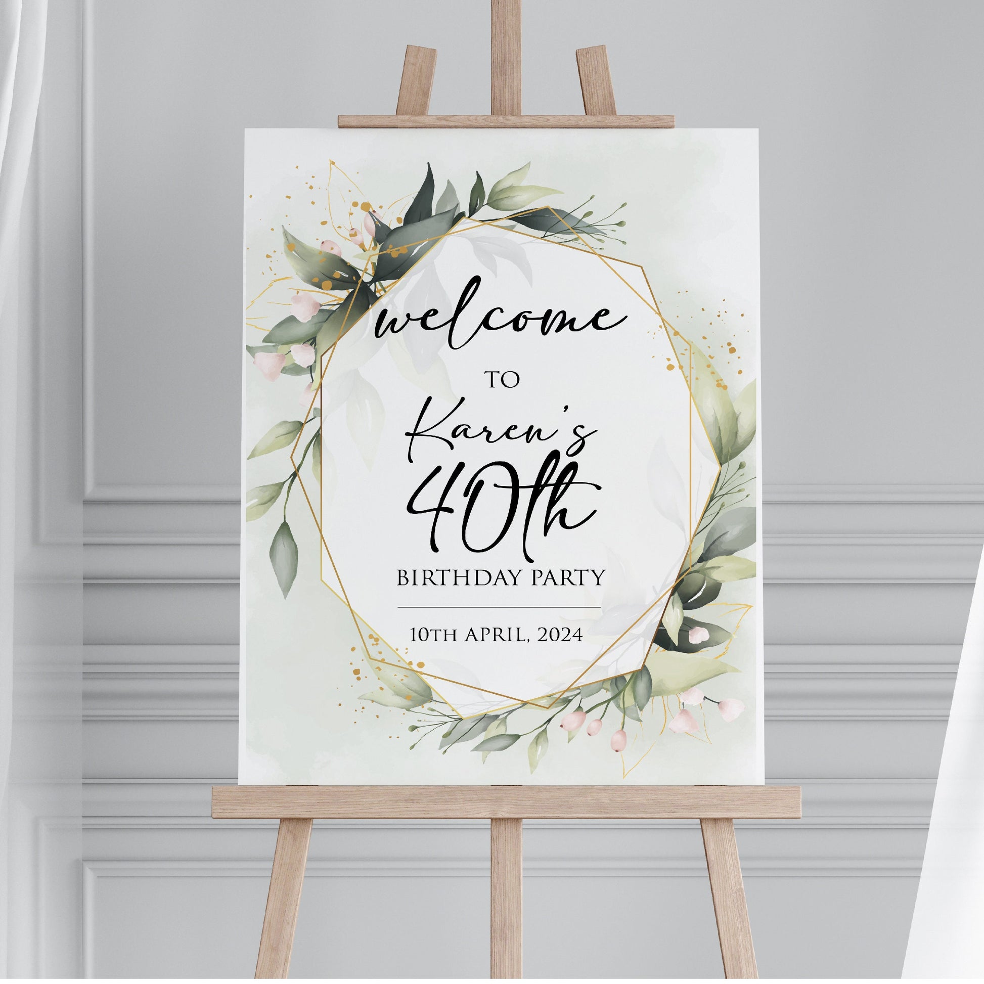 Personalised 40th Birthday Party Welcome Sign TLPC40001 Physical or Digital, A1 or A2 Portrait Welcome Board for Birthday Easel