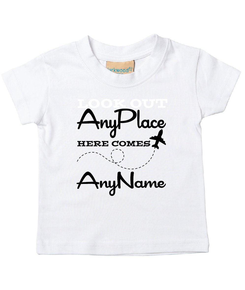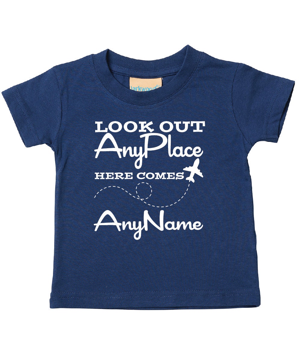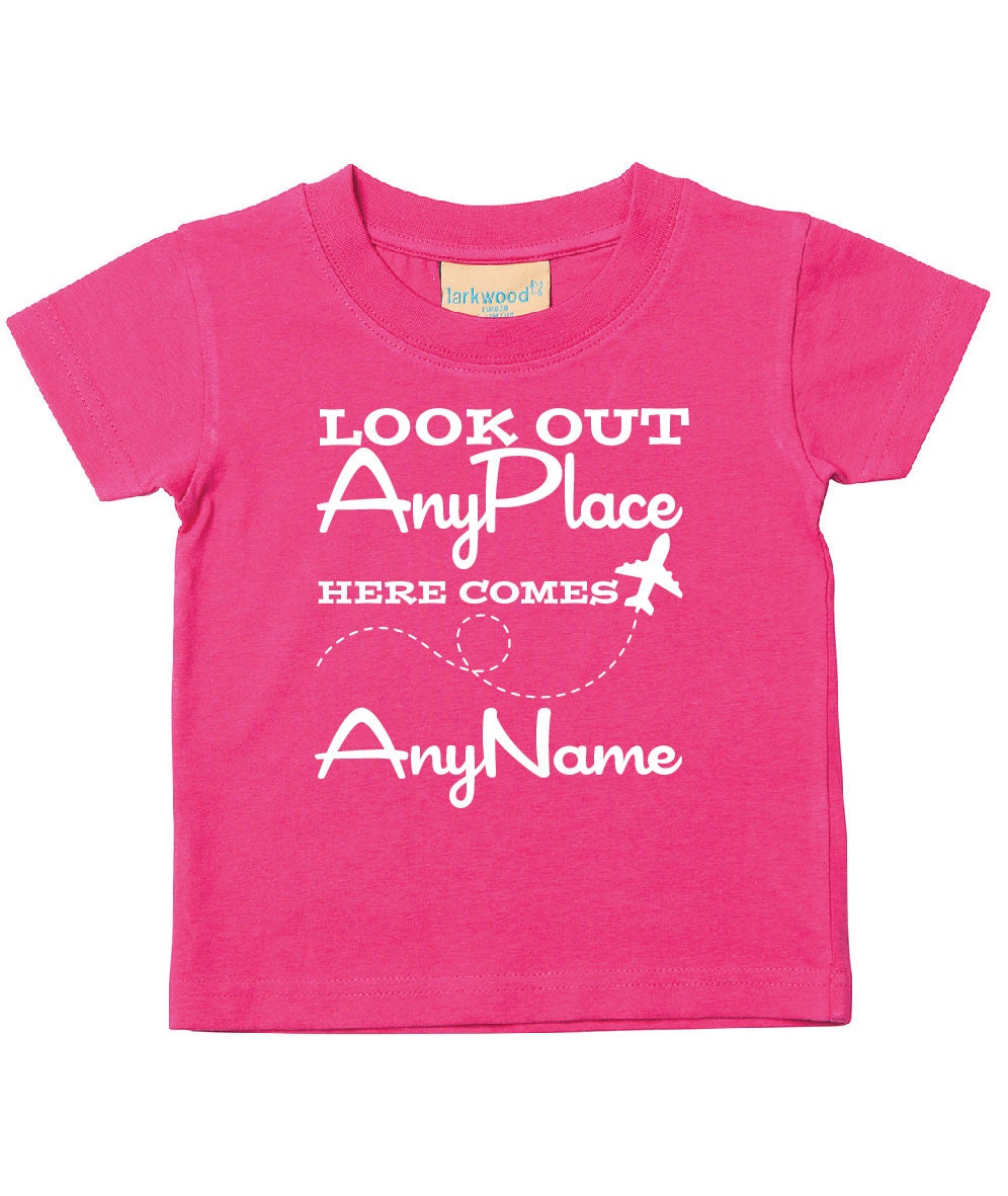 Personalised Babies/Toddlers/Kids Holiday T-Shirt | Look Out (Any Place) Here Comes (Any Name) | Child's Name Vacation Tee