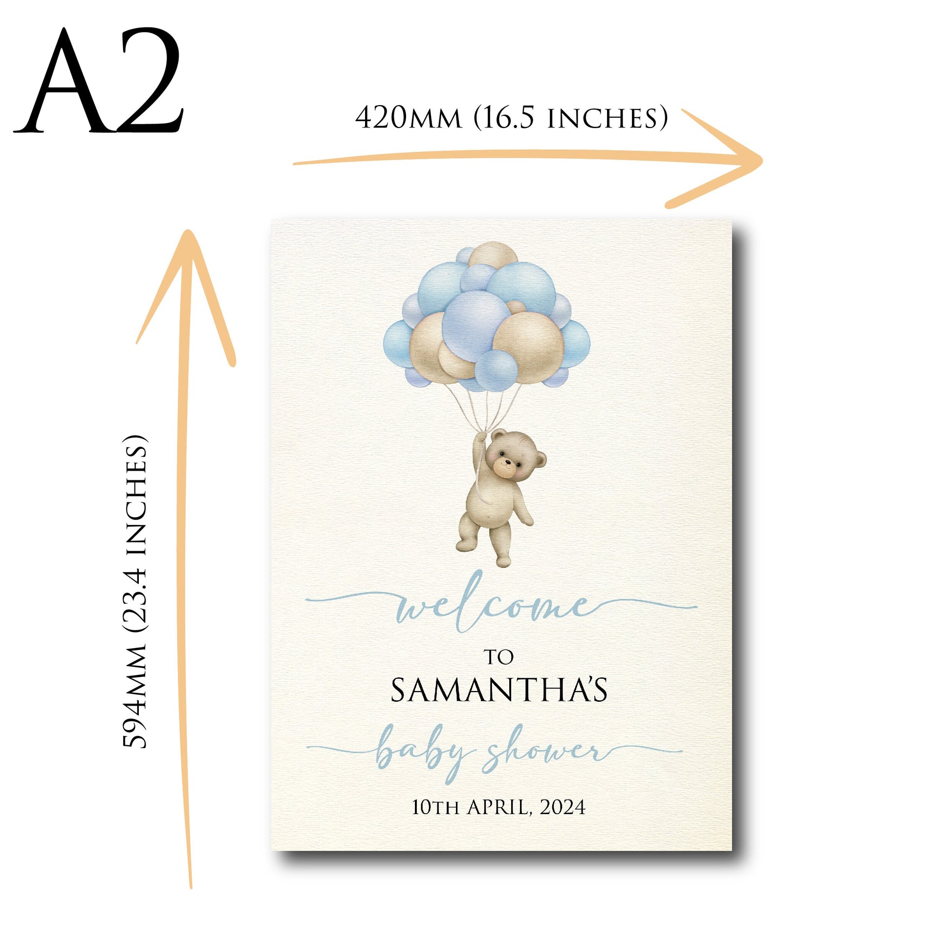 Personalised Baby Shower Welcome Sign TLPCBS005 Physical or Digital, Bear Balloon Baby Boy Blue Hot-Air Balloon Baby Shower Sign