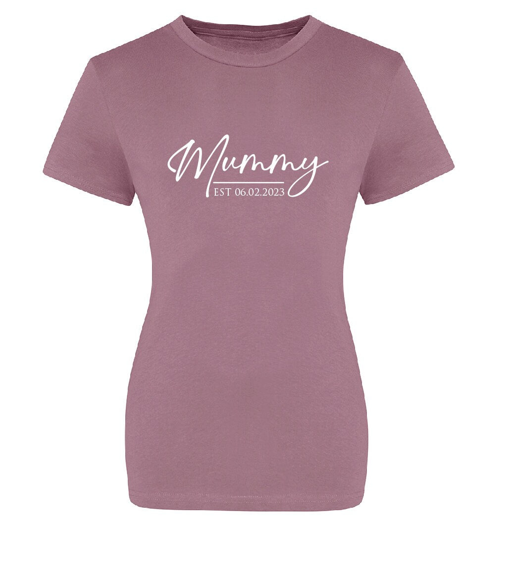 Personalised Mummy Est. (Any Date) T-Shirt JT10F / JT10 | Cool Pink Mother's Day tshirt | Gift for Mother's Day | Gift for New Mum