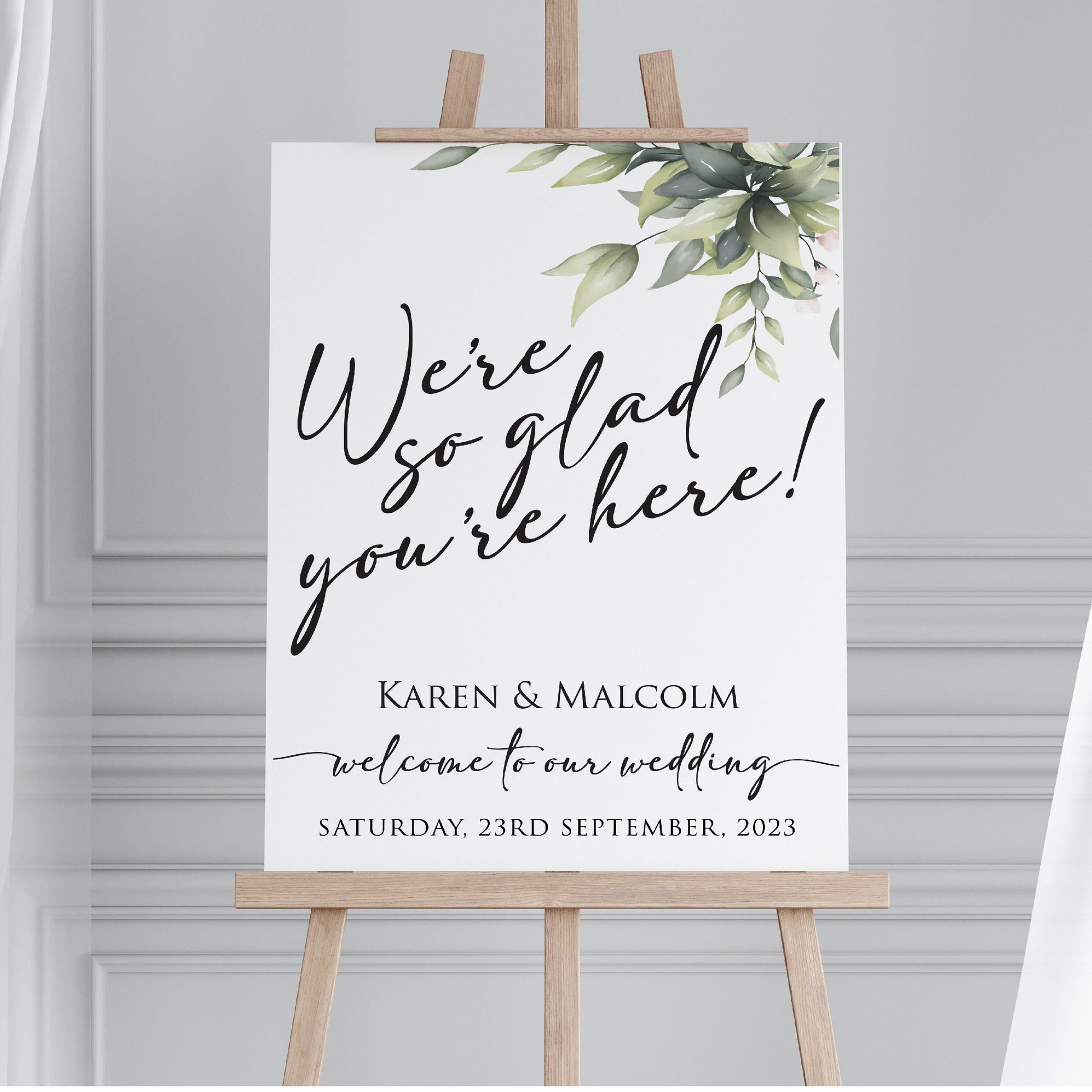 Personalised Wedding Welcome Sign TLPCW004 Physical or Digital, A1 or A2 Portrait Welcome Board for Wedding Easel, We're So Glad You're Here