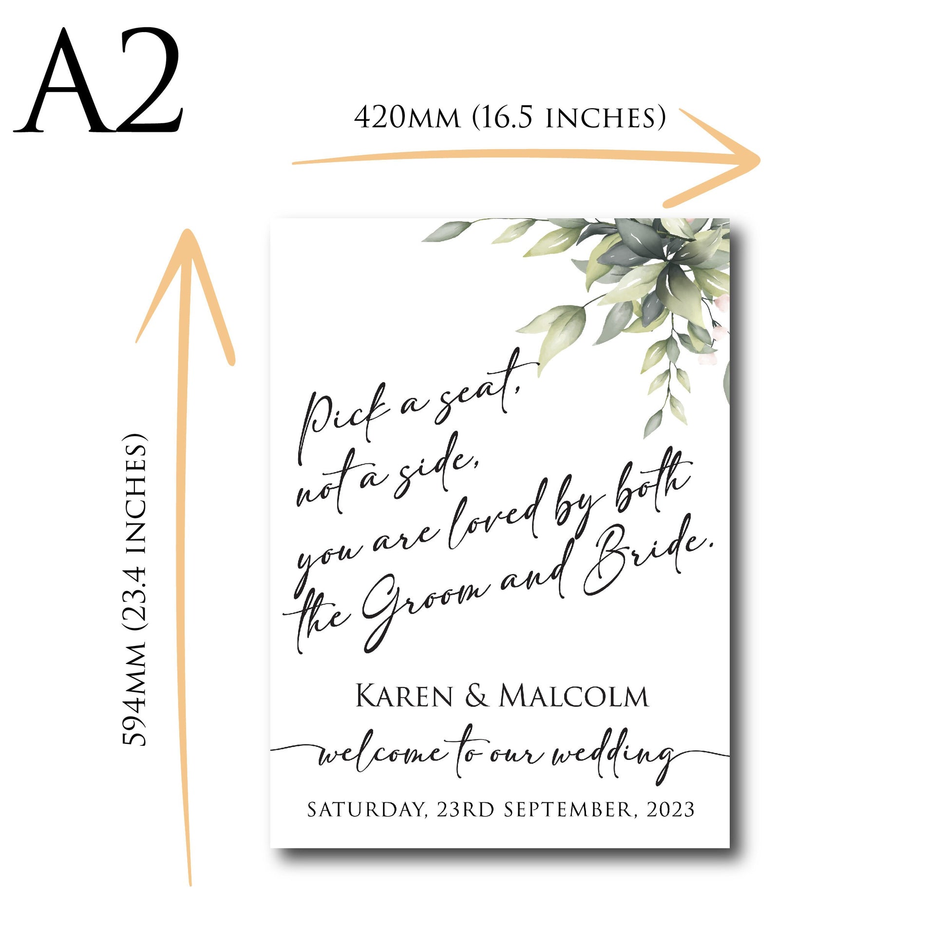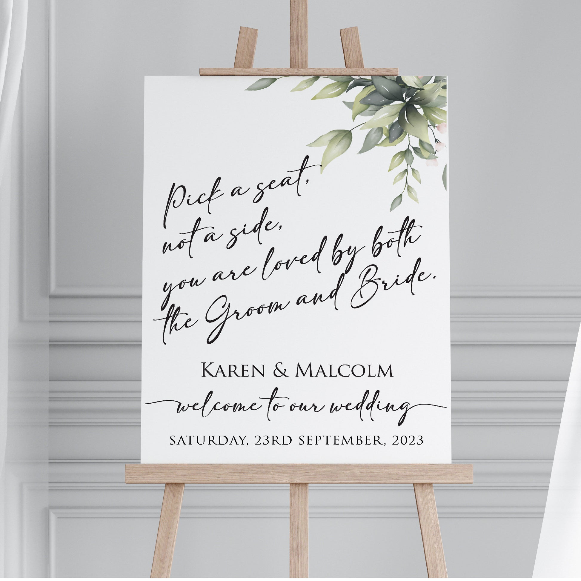 Personalised Wedding Welcome Sign TLPCW005 Physical or Digital, A1 or A2 Portrait Welcome Board for Wedding Easel, Pick a seat not a side