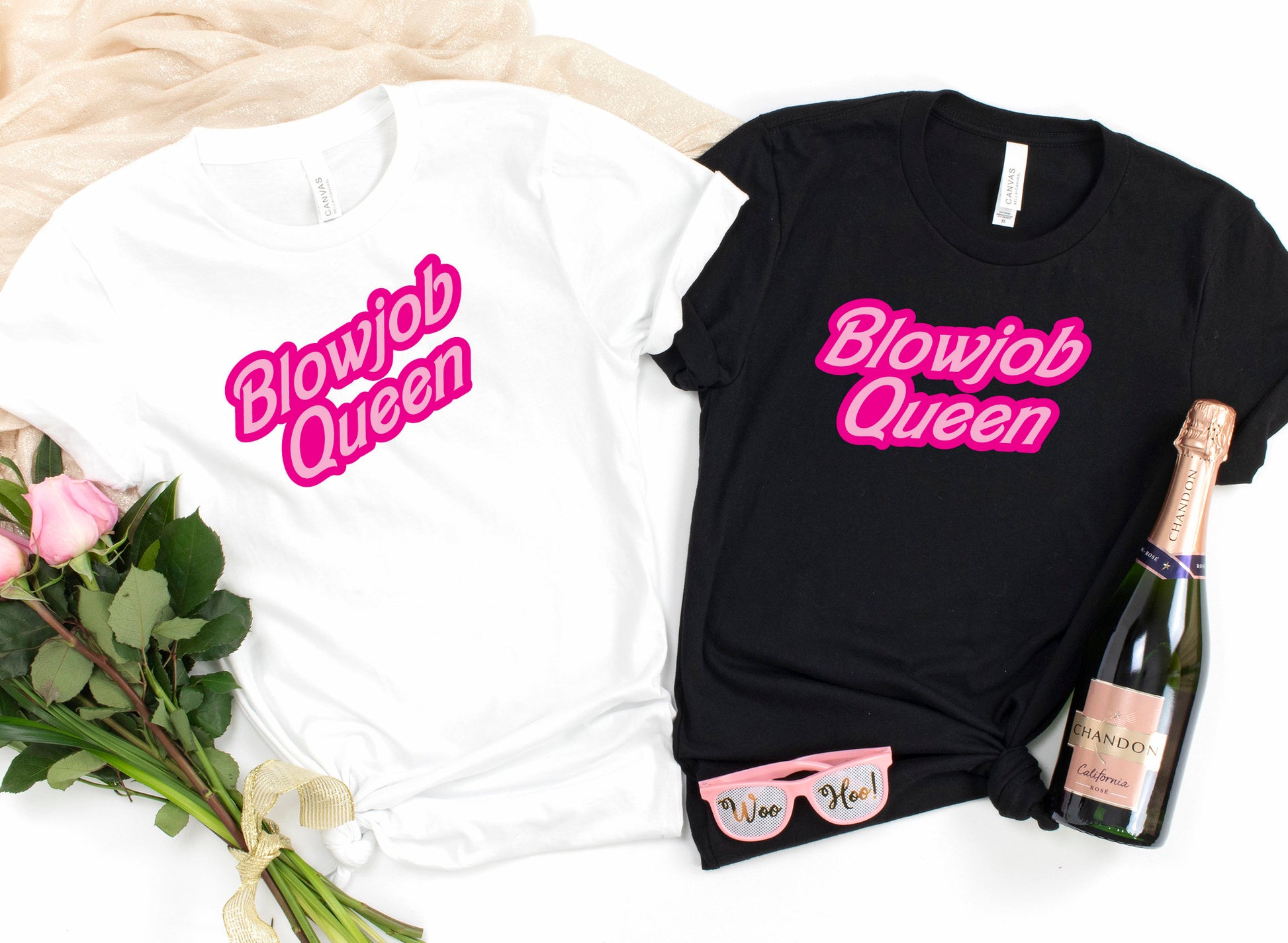 PINK Print Blowjob Queen T-Shirt, Funny Rude Ladies or Unisex Tee Top, Offensive Joke Birthday Hen Party