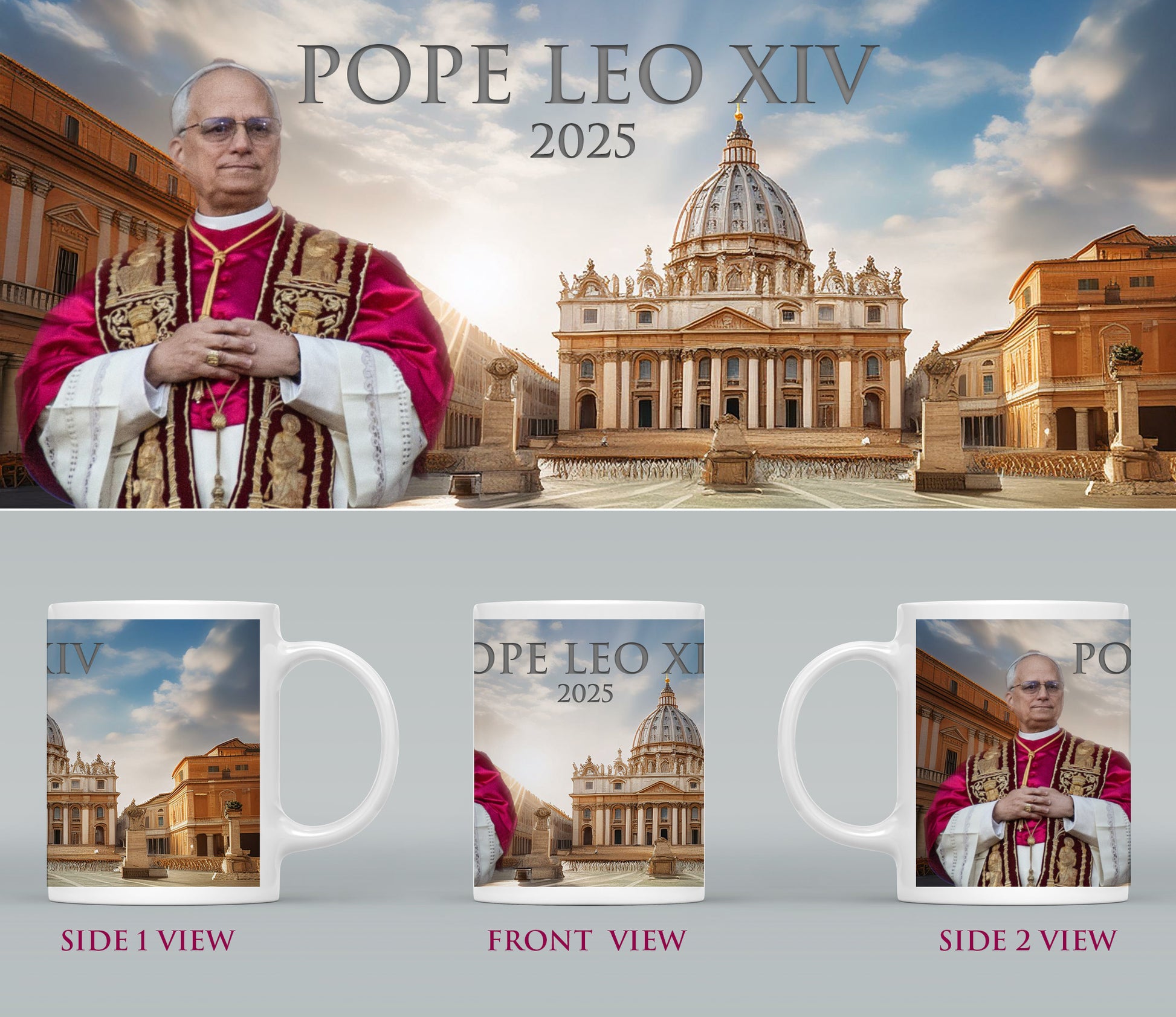 Pope Leo XIV Mug C | Commemorative Pope Mug |Vatican City 2025 | Ceramic 11 oz mug | Papal Mug |