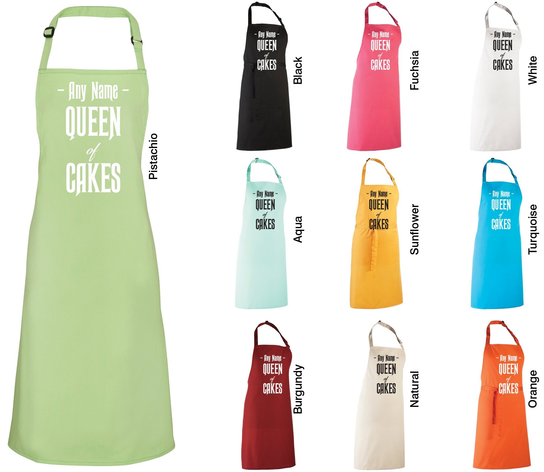 Queen of Cakes Apron Personalised with Any Name, BBQ, Kitchen, Chef, Mum, Mom, Baker, Bake, Barbecue