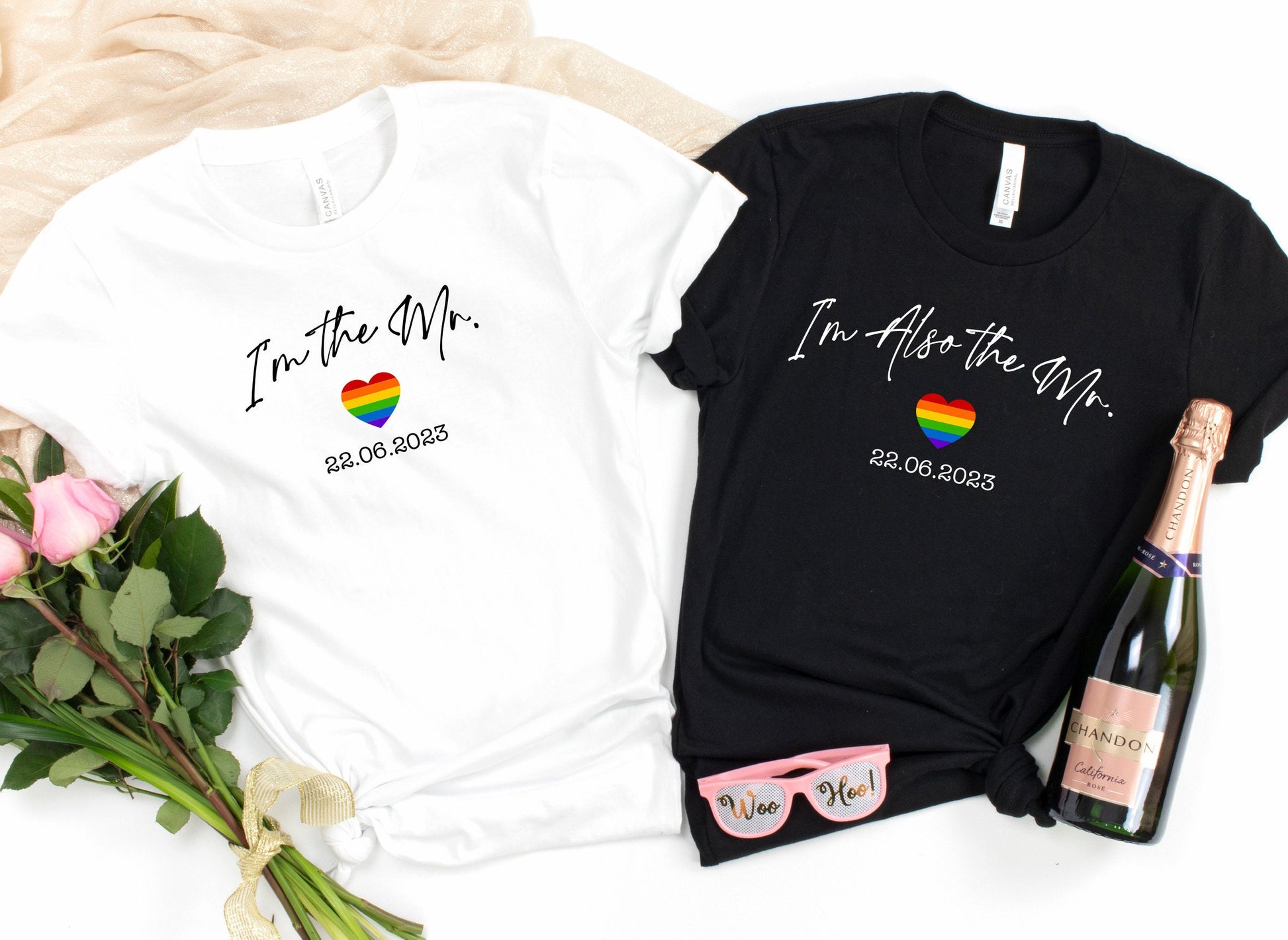 Rainbow Heart Personalised I'm the Mr / Also the Mr Tshirt | Customised date | Same Sex Wedding | LGBQT | Pride