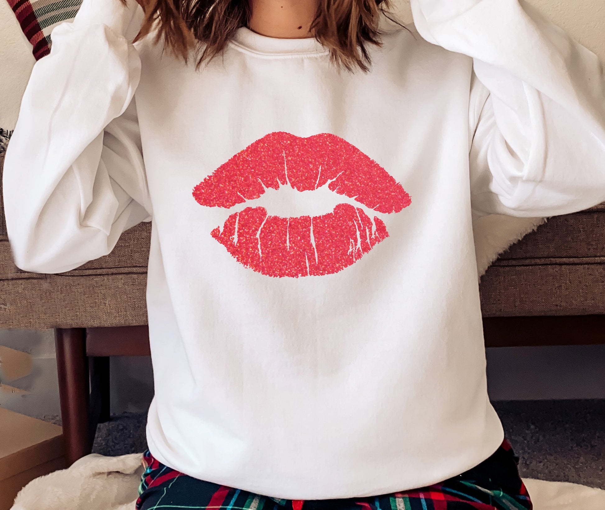 Red Glitter Lips White Sweatshirt RX301 Jumper Sweater Valentine Kiss