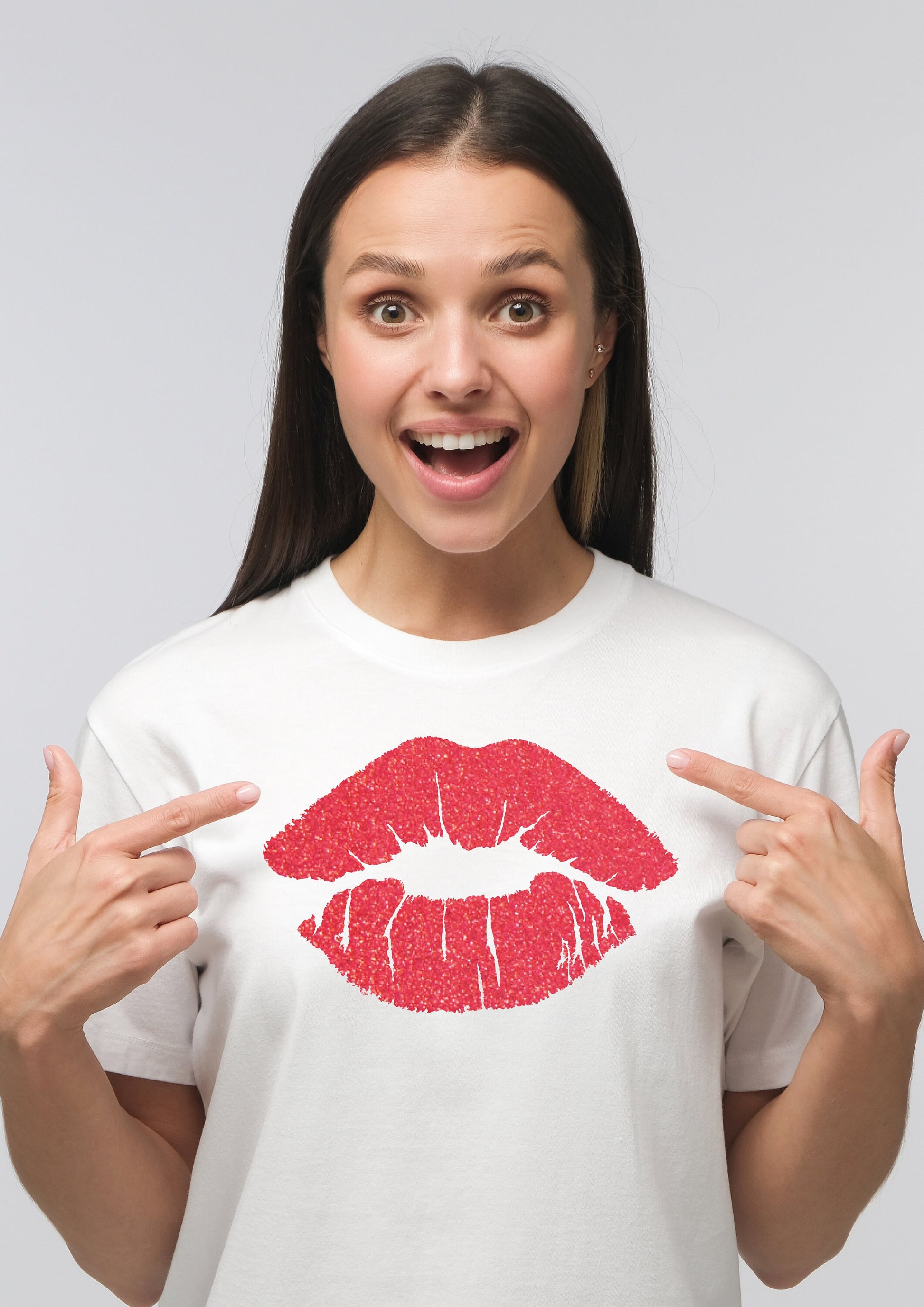 Red Glitter Lips White T-Shirt | Kiss Tee | Valentine's Tshirt