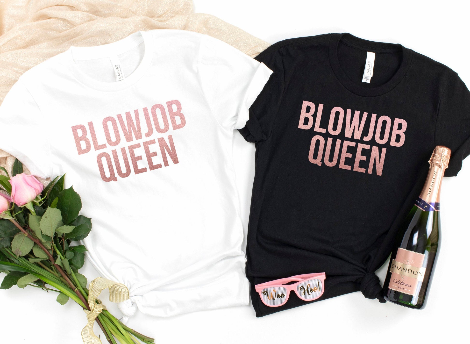 ROSE GOLD Blowjob Queen T-Shirt, Funny Rude Ladies or Unisex Tee Top, Offensive Joke Birthday Hen Party