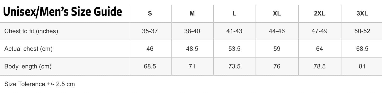 Sizes listed are chest size. These are UK sizes so buyers in the USA may feel more comfortable getting a size up.