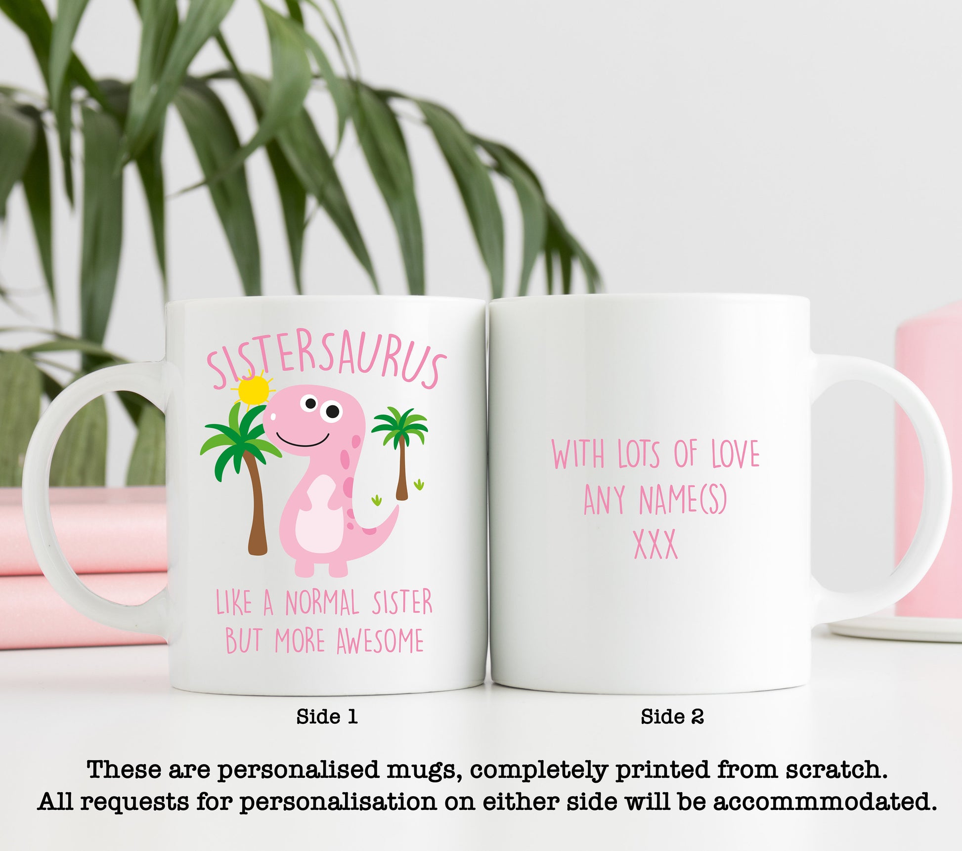 Sistersaurus Mug - Awesome, Cool, Funny, Dinosaur Cup Gift for Best Friend Sister, Birthday Christmas Gift