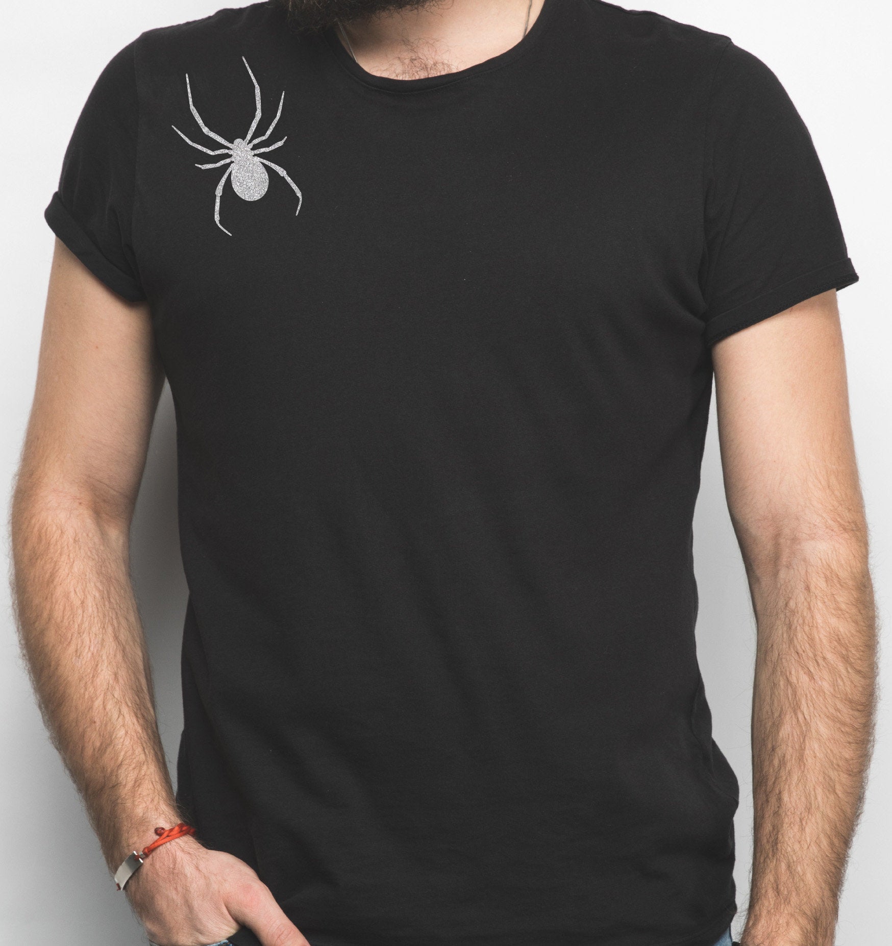 Spider "Brooch" T-Shirt - Silver Glitter motif