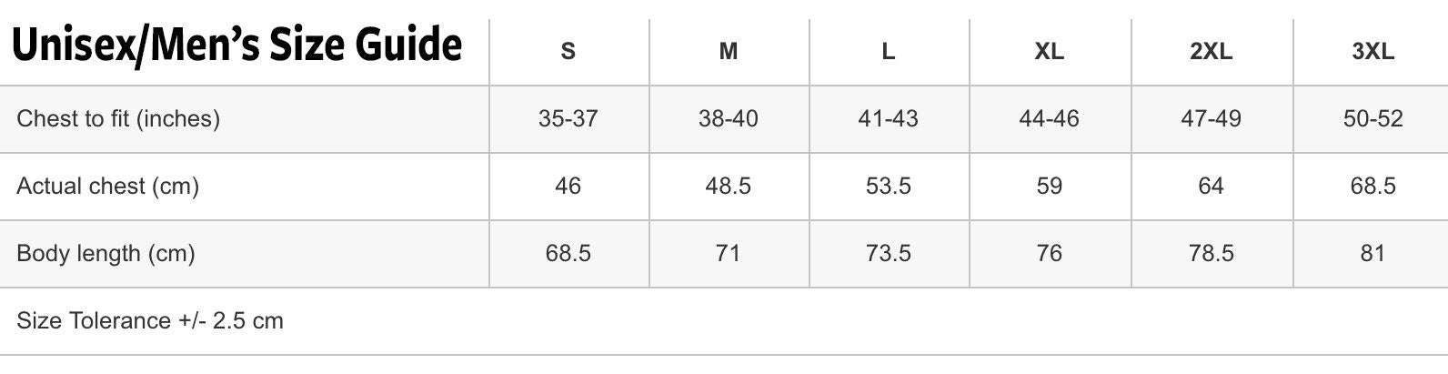 Sizes listed are chest size. These are UK sizes so buyers in the USA may feel more comfortable getting a size up.