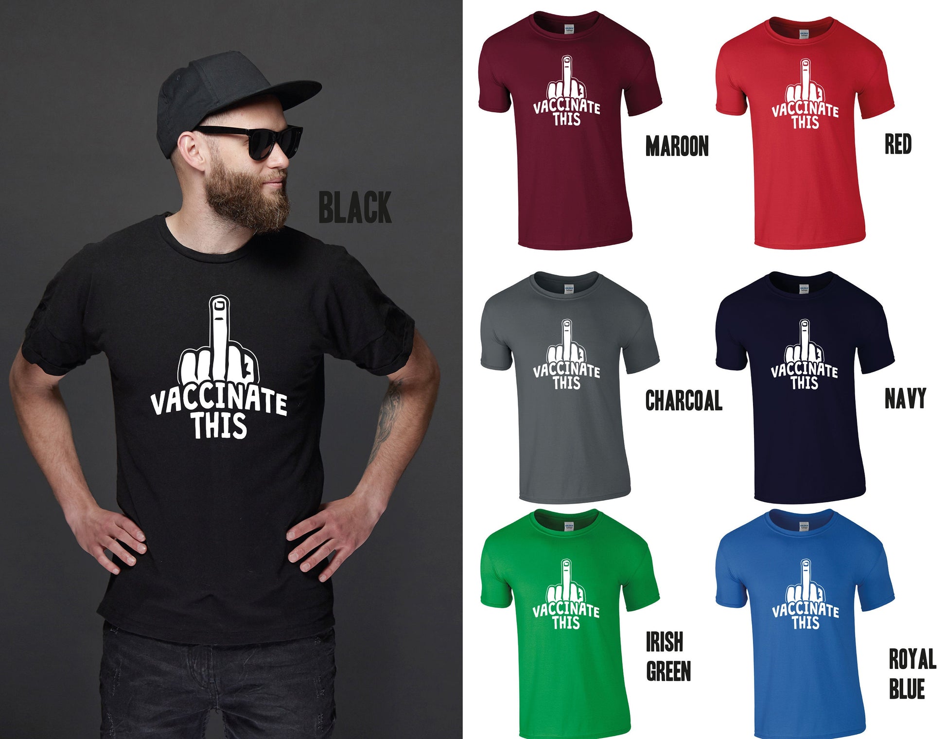 Vaccinate This T-Shirt B - Funny Middle Finger Flipping Bird Vaccination Anti Track Trace Tee