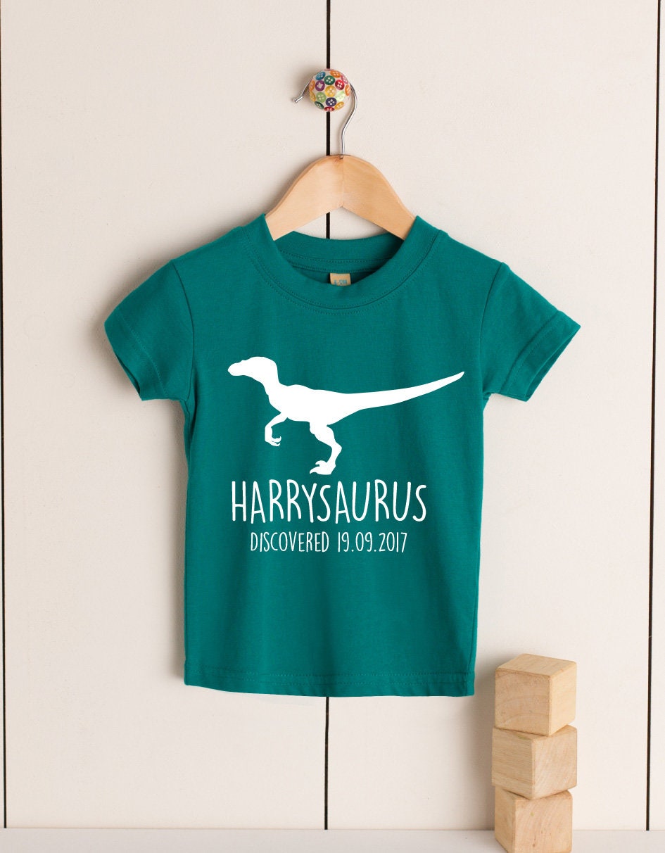Velociraptor Babies/Toddlers/Kids Personalised Dinosaur T-Shirt - Any Name and Date Children's Birthday Dino