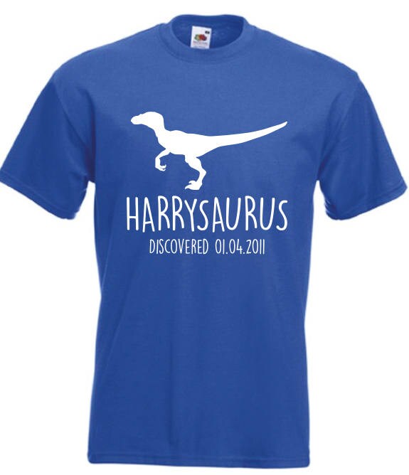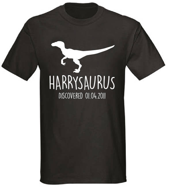 Velociraptor Kids Personalised Dinosaur T-Shirt - Any Name and Date Children's Birthday Dino