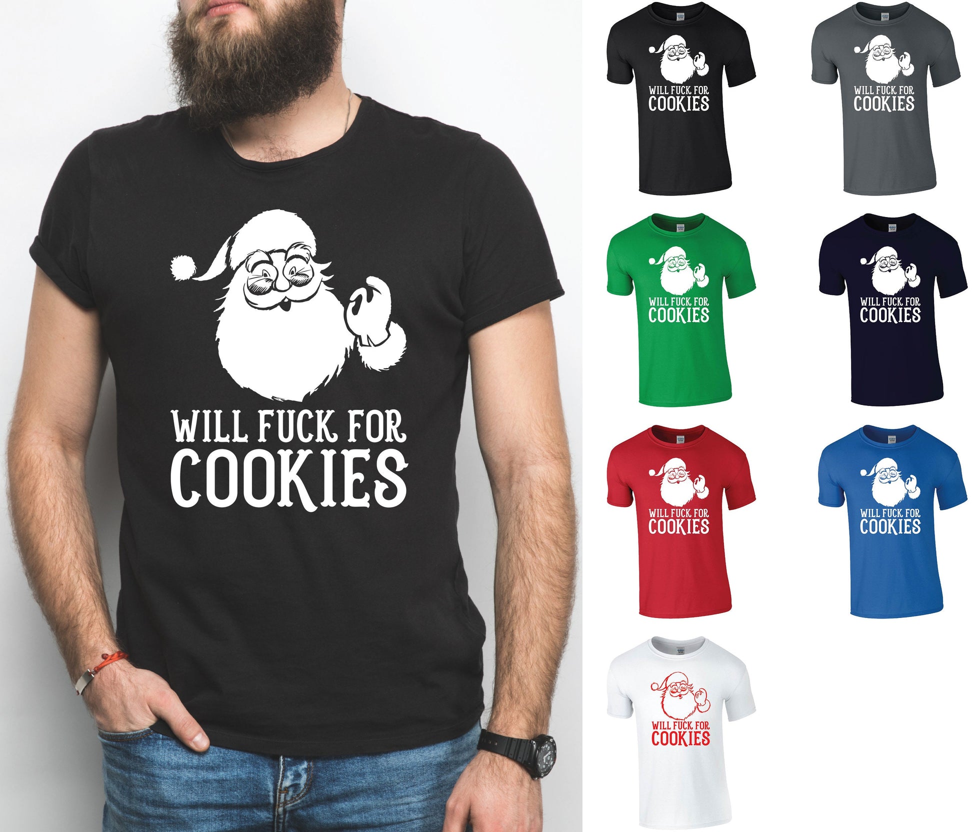 Will F*ck For Cookies T-Shirt, Rude, Funny Christmas, Santa Claus