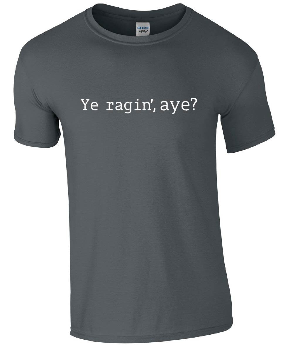 Ye Ragin', Aye? T-Shirt | Funny Scottish Slang Slogan Scotland Father's Day Tshirt