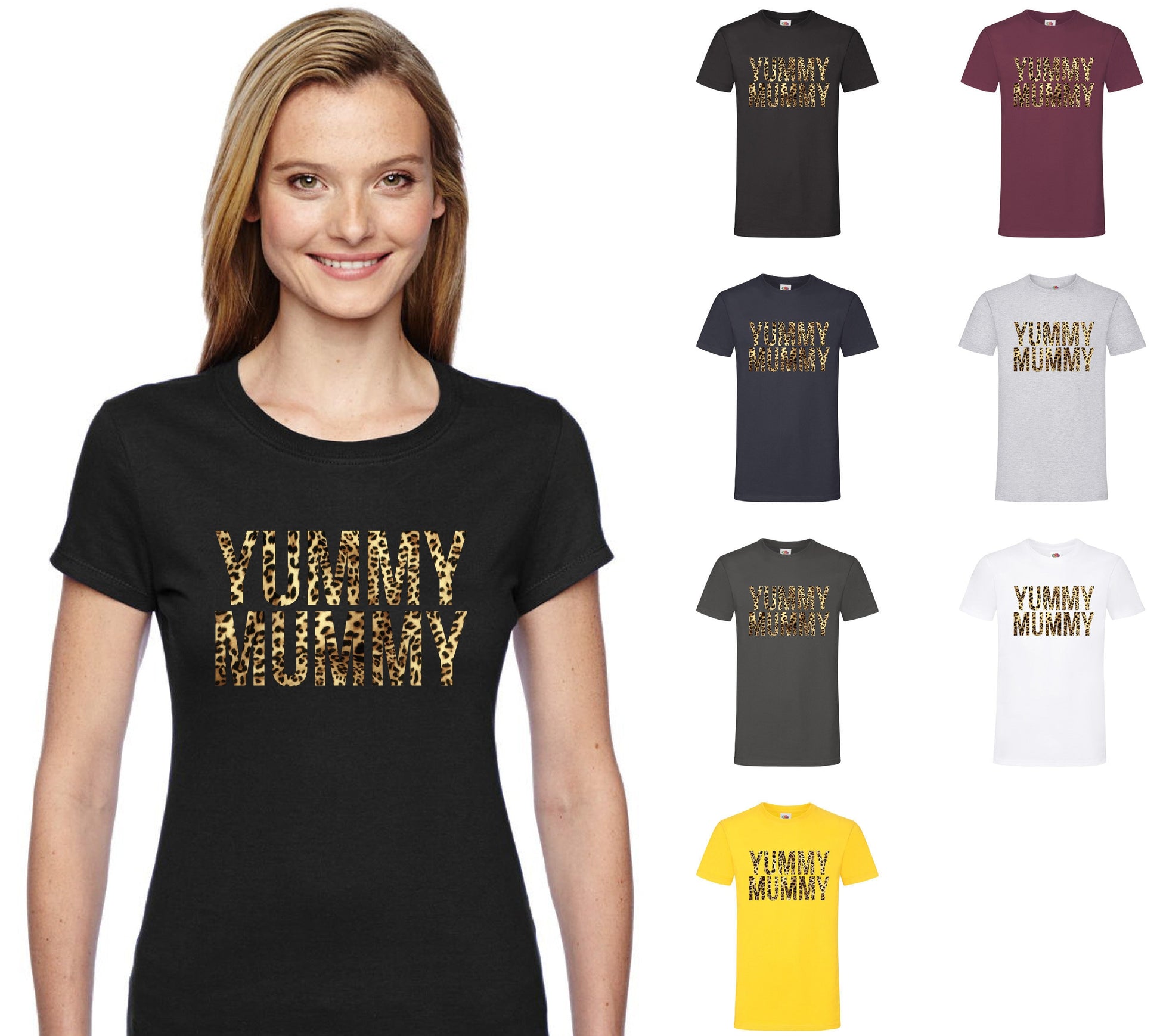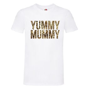 YUMMY MUMMY Leopard Print T-Shirt - Funny Cool Ladies or Mens (unisex)